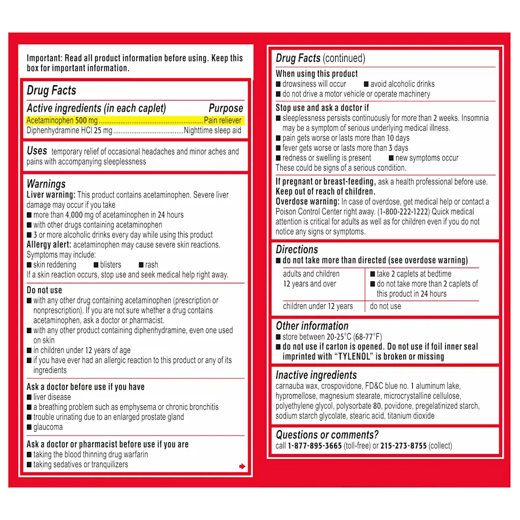 Product: Tylenol PM Extra Strength Caplets