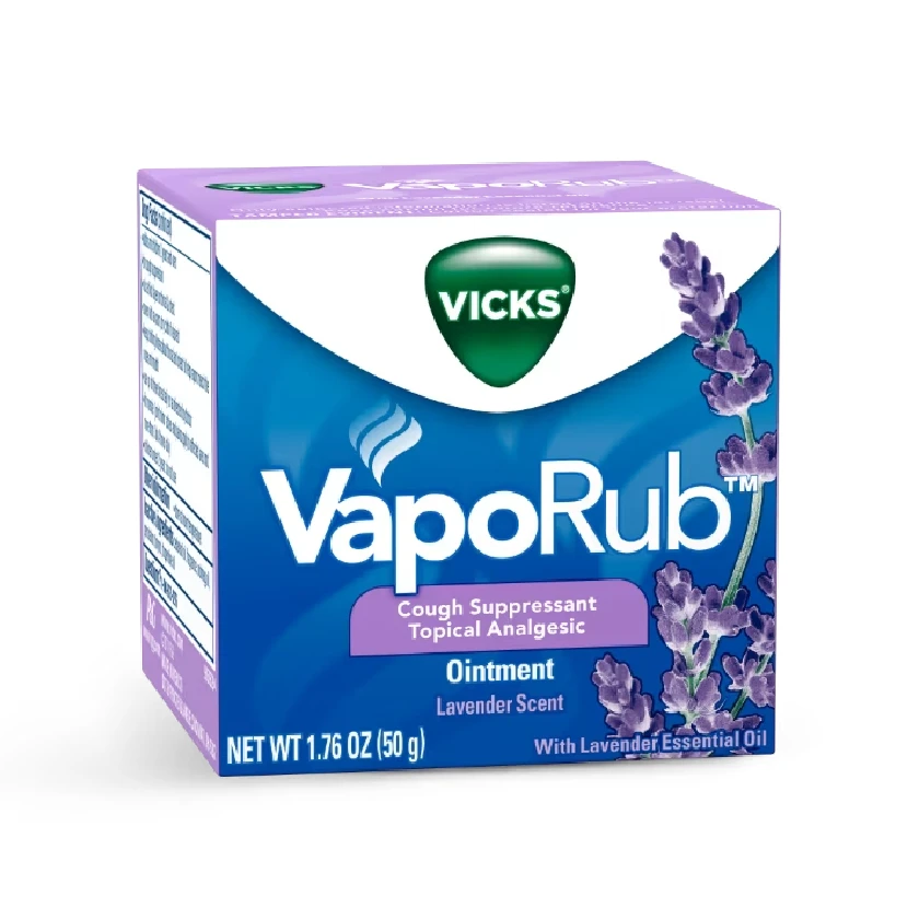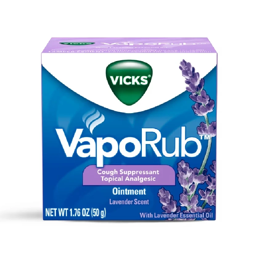 Lavender-scented VapoRub providing soothing relief and calming comfort.